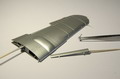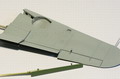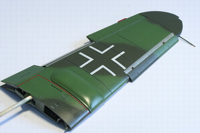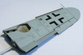 Mit Neugier bin ich an die Fläche gegangen, ist es in Sachen Maßstab eine gänzlich neue Erfahrung gewesen. Die Zusammensetzung war denkbar einfach und hat daher natürlich Spaß gemacht. Geändert wurde eigentlich nur die beim Original nicht vorhandene Kante am Vorflügelspalt, die Durchbrüche im Fahrwerkschacht, der größere Radschacht, der Moronemast so wie das Begrenzungs- und Navigationslicht. Die Lackierung erfolgte wie abgemacht in Alusilber als Grundanstrich und RLM 76/82/81 von Gunze als Tarnanstrich. Nach dem Ankleben der Einzelteile, einer Zwischenschicht Klarlack und dem Aufbringen der Decals wurde noch schnell eine Transportbox gebastelt, um alles sicher versenden zu können.