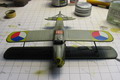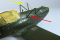 Am Modell wurde das mit Maskol und einem kleinen Schwämmchen realisiert. Der Flieger wurde vorher in seinen „Naturfarben“ lackiert. Um die Spanten heller wirken zu lassen, wurden alle einzeln mit 0,4mm Klebestreifen maskiert und nach dem Abziehen nochmals vorsichtig übersprüht. Bei der Verspannung sollte man nicht auf die Bauanleitung hören und den, von vorn gesehen zweiten Spanndraht, der von der oberen Fläche zum Rumpf geht, nicht in den Rumpf kleben, sondern ein Loch in den Flügel bohren, wie im Bild zu sehen. Ansonsten kommt die Geometrie der Verspannung durcheinander! Dadurch dass die Räder verdrehsicher angebaut werden, ist es schwierig diese vor dem Ankleben abzuflachen. Ich habe die Hauptfahrwerksräder verklebt und statt des Heckrades einen Draht mit Bleikugel befestigt (Holzleim) und bin damit auf einem Schleifpapierbogen herum gefahren (was für ein Spaß!:-) Von Quickboost gibt es schöne Bombenaufhängungen, allerdings sind diese zu lang! Am besten noch am Anguss 1,5 mm von der langen Seite herausschneiden, wieder zusammenkleben und anders herum (als ursprünglich vorgesehen) am Unterflügel befestigen. Wer sich mit tschechoslowakischen Nationalitätskennzeichen auskennt wird sicher bemerken, dass hier beide weißen Drittel in dieselbe Richtung zeigen. Das ist diesmal durch sehr viele Originalfotos, auch von anderen Flugzeugen, zu belegen und bildete die Ausnahme von der Regel beim Slowakischen Nationalaufstand (SNP). |