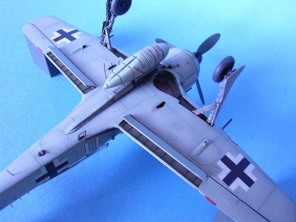 | Nahezu Standard ist es, auch in diesem Maßstab, die Rohre der Bewaffnung und das Staurohr aus Kanülen zu erstellen. Wobei die MG-Mündungen über dem Motor nur aufgebohrt werden müssen, da sie sehr schon wiedergegeben sind.Die Anbringung der Dipole (Antennen) an der Unterseite nach Bauplan ist so nicht im Original belegt.