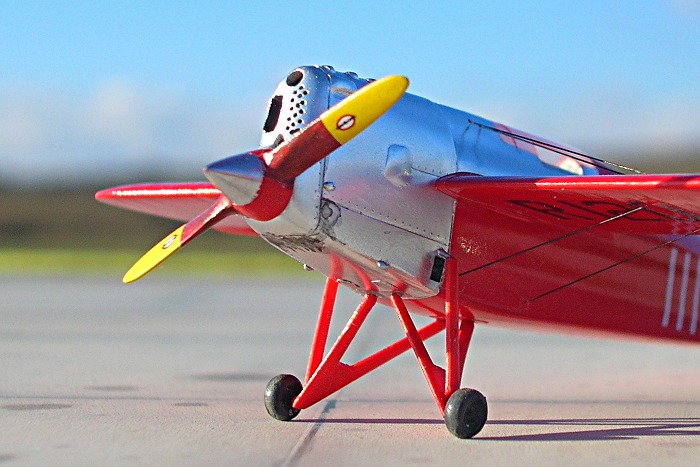 | Steve Wittmann (1904- 1995) war einer der Dienstältesten und erfolgreichsten Rennpiloten der USA. Die meisten Erfolge erflog er sich mit kleinen leichten Eigenbaufliegern. Die "Chief Oshkosh" ist sein erstes selbstgebautes Rennflugzeug. Bei den ersten Einsätzen 1931 erreichte die "Chief Oshkosh", angetrieben von einen 90 PS Motor, erstaunliche 150 mph (241km/h). Die Maschine wurde im Laufe der Jahre mehrfach umgebaut. 1936 erreichte die Maschine mit einen 4 Zylinder, 150 PS starken Menasco Motor 215 mph (346 km/h). Mein Modell zeigt die Bauausführung von 1934 mit einem 110 PS, 4 Zylinder Hermes Cirrus Motor.                  |