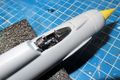 Fakt ist, man baut mit diesem Modell nur das Flugzeug, was heute in Monino steht und der Witterung preisgegeben ist. Wer das wahre Rekordflugzeug bauen möchte, der nimmt dem Bausatz Je-152-1 (Nr. 72036) von Modelsvit. Das Museumsflugzeug hat die verlängerten Tragflächen. In der Bauanleitung ist das schlicht falsch dargestellt, ebenso die zugeklappten Klappen am Hauptfahrwerk. Hier hat man im Zuge der Umlackierung die Hydraulikzylinder von der Klappe getrennt und zugeklappt. Eine neue Cockpithaube habe ich mir gezogen, weil so eine, einen besseren Durchblick hat. Interessant ist auch, das in Monino schon einmal das Blau erneuert wurde. Dabei hat man den Bugbereich bis ganz vorn auch Blau gestrichen. In der vorigen Variante war dieser noch Hellgrau, wie der Rest der Zelle.