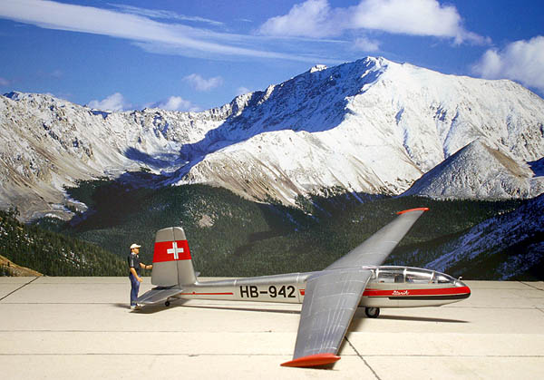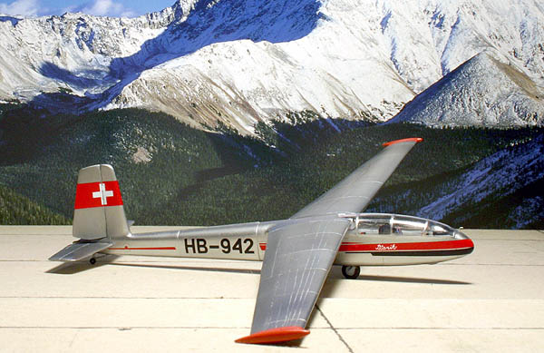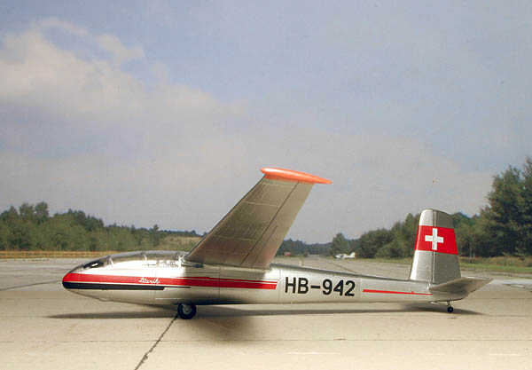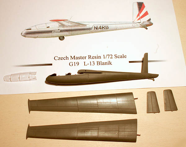 | Der 72er Resin- Bausatz stammt vom tschechischen Hersteller CMK. Wer dessen Bausätze kennt, weis das hier eine hoher Qualitätsanspruch Standard ist. Aufgrund der wenigen Teile, ist das Modell schnell gebaut. Trotzdem kommt es vor, das Teile leicht verzogen sind und erst in einem heißen Wasserbad in Form gebracht werden mussten. Bei mir war es die rechte Tragfläche, die etwas verbogen war. Die Tragflächen wurden mit Drahtstiften versehen, um das Ausrichten am Rumpf zu erleichtern. Das Cockpit wurde nach Fotos etwas aufgebessert. Mittels Rändelrädchen wurden nach der beiliegenden 72er Zeichnung die Nietreihen nachgezogen. Die Farbgebung erfolgte mit Alclad II. Neben der Schweizer Blanik liegen dem Bausatz noch Decals für eine Deutsche, eine US- Amerikanische und einer Variante vom RAF Air Training Corps bei.  |