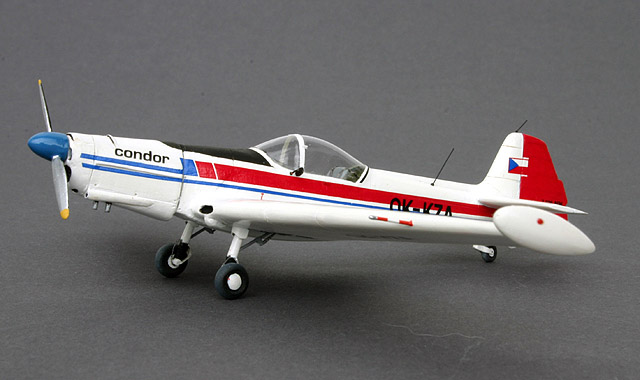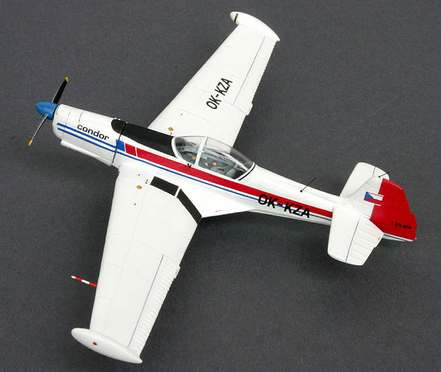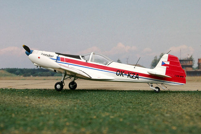 | Die Geschichte dieser speziellen Variante der Z-526 ist nicht so einfach, wie man sich das landläufig vorstellt. Es ist kein Serienflugzeug, aber es entstand aus Serienteilen und Serienbaugruppen. Es gibt in Deutschland wahrscheinlich nur einen, der sich mit der Materie der Zlin- Flugzeuge so gut auskennt, das ist mein Fliegerfreund Tobias. Die Geschichte dieses Flugzeuges geht auf das Jahr 1968 zurück. Da entstanden fünf Z-526AS für die tschechische Motorkunstflug Nationalmannschaft, die auch im gleichen Jahr in Magdeburg zur Weltmeisterschaft am Start waren. Aber schon unmittelbar darauf wurden mindestens drei Flugzeuge zu Z-526AF umgebaut. Auch der Prototyp der Z-526AFS entstand aus einem der fünf ehemaligen AS. Das eine verbliebene Rumpfgerüst war dann 1981 der Ausgangspunkt für die Z-526AFM. An den Rumpf hatte man eine 526A Tragfläche, was der alten 326er Fläche entsprach, montiert. Dazu kam das M-337 Triebwerk aus einer Z-43. Mit diesem Einzelstück, das den Namen „Condor“ bekam, stellte Radek Orlita mehrere Rekorde in dieser Klasse auf. Danach diente das Flugzeug mit seinen kräftigen Triebwerk, als Schleppflugzeug für Segelflieger.