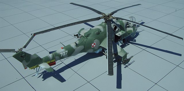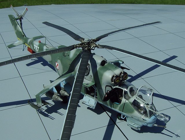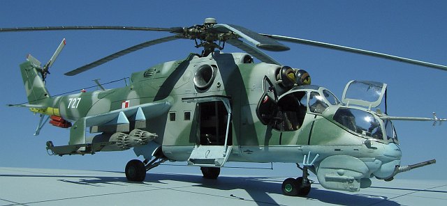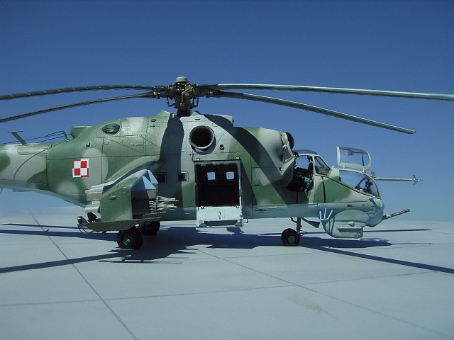 | Der waffenstarrende, lärmende und bedrohlich wirkende Mi-24 ist einer der bekanntesten Helikopter der Welt und sein wuchtiges Erscheinungsbild war Motivation genug für mich, diesen Boliden als Modell zu bauen. Der als "Gunship" ausgelegte Mi-24 entstand auf der Basis des Mi-8. Und auch nach dem Start der Produktion vor 35 Jahren ist kein Ende der Karriere des überaus robusten Mi-24 abzusehen.                  |