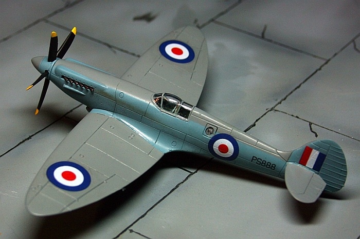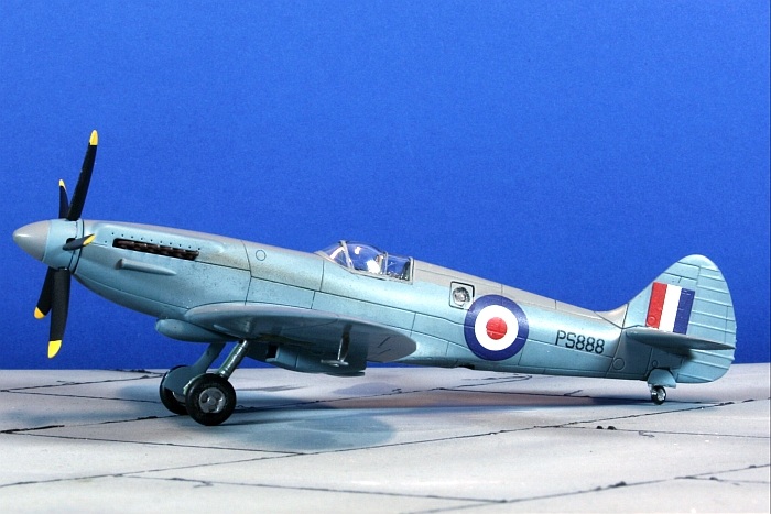 | Die Supermarine Spitfire wurde zwischen 1936 und 1948 über 20.000 Mal in 24 Varianten und unzähligen Untervarianten gebaut.Sie gehört sicherlich zu den wichtigsten Flugzeugen des 2. Weltkrieges und hatte erheblichen Anteil an dem Ausgang des Krieges in Europa. Mein Modell stellt die letzte im militärischem Einsatz geflogene Spitfire dar, die PR Mk.XIX mit der Kennung PS888. Die Version PR Mk.XIX war eine Photoaufklärungsvariante basierend auf der PR Mk.XIV. Angetrieben von einem Rolls-Royce Griffon 65 mit über 1500 kW erreichte die PR Mk.XIX über 700 Km/h in 8000 Meter Höhe sowie eine Dienstgipfelhöhe von über 13.000 Metern.Der letzte militärische Einsatz einer Spitfire wurde am 01.04.1954 von RAF Seletar in Singapore im Rahmen der Operation Firedog durchgeführt. Die PS888 des 81. Squadrons wurde von Squadron Leader Swaby geflogen.                  |