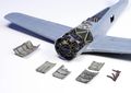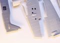 Parallel dazu beschäftigte ich mich mit den Landeklappen. Auch das ist ein Ätzteilsatz von Eduard. Die Verarbeitung ist für eine Darstellung voll ausgefahrener Klappen in Ordnung. Möchte man die Klappen in Startstellung montieren, sind die Materialstärken störend. Hier half nur Weglassen und grober Materialabtrag.