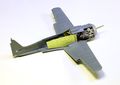 | LackierungNachdem alles schön eingepackt wurde, konnte es nun an die Lackierung gehen. Ich bin eigentlich keiner, der grundsätzlich und immer grundiert. Allerdings habe ich lernen müssen, dass manche Farben einfach besser halten, wenn ein Haftvermittler drunterliegt, so zum Beispiel AlcladII. In diesem Falle war eine dünne Schicht Acrylfarbe das Mittel der Wahl (RLM 66). Ich lackiere seit einiger Zeit sehr gerne mit Gunze-Farben, so auch hier. Eine Sichtkontrolle ergab keine Oberflächenprobleme. Also konnte im Anschluss direkt AlcladII Dark Alu aufgetragen werden.