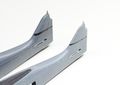 Als nächstes stand die Korrektur des wohl größten Problems des Bausatzes an. Die Seitenleitwerksflosse hat eher die Form eines Keils denn eines Bauteils mit aerodynamischer Funktion. Auf dem Foto sieht man im Vordergrund die Korrektur, dahinter liegt ein unveränderter Rumpf. So ganz trifft es die Form noch nicht, es ist aber schon besser als vorher.