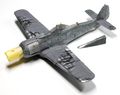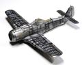 | Die Fw 190 ist für mich eines der faszinierendsten Flugzeuge. So ist es also nur natürlich, dass ich mir ziemlich sofort nach dem Erscheinen des Bausatzes so ein/zwei Exemplare besorgte. Nach dem ersten Öffnen des Kartons machten sich jedoch nicht nur Euphorie breit. Die 72er Ausgabe hatte so ziemlich alle Schwachstellen des 48er Modell geerbt. Als da wären die zu dünnen Räder, die missratene Form des Seitenleitwerkes und die etwas zu flach ausgeführte gewölbte Kabinenhaube. Im Gegenzug machte Eduard bei diesem Bausatz jedoch eine ganze Menge richtiger als die bisherigen Anbieter einer Fw 190 in diesem Maßstab. Voran natürlich die vorbildgerechte Ausgestaltung des Fahrwerksschachtes, die allgemein sehr gut getroffenen Proportionen und natürlich, die wie immer reiche Auswahl an Markierungsvarianten. Irgendwann kam bei mir dann noch die Royal Class Box hinzu, was die Vielfalt der Bemalungsvarianten quasi unerschöpflich machte.Was also tun mit diesem Modell. Nach einigem hin und her entschied ich mich für die „Gelbe 2“ vom JG-54, wie sie im Sommer 1944 in Frankreich fotografiert wurde.