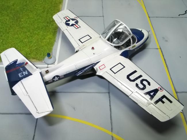 neu erstellt.Mein Modell sollte eine aktuelle T-37B, wie sie von der Luftwaffe zur Zeit genutzt wird, darstellen. Damit ergaben sich 2 Grundprobleme: Erstens benötigte ich aussagekräftiges Vorbildmaterial. Zwar gibt es genug Fotos dieser Tweets im Internet, jedoch haben diese Tweets individuelle Namenszüge auf dem Bug. Diese wollte ich genauso darstellen wie alle anderen Wartung- und Warnhinweise wie auch die „Nato Rose“ auf dem Seitenleitwerk. Das Ganze muss dann natürlich auch noch zu der Kennung passen. Dafür aber reichen die Fotos der verschiedensten Exemplare aus dem Internet nicht aus. Zweitens stand auch sofort fest, das ich mit der Verwendung von Decals aus dem Bausatz selber und aus meinem Fundus sowie eventuellen Maskieren und Lackieren von einzelnen Details nicht in der Lage bin, das Modell komplett zu markieren. Entsprechende Decals von Zubehörherstellern gibt es keine, der Decalsatz aus dem Hasegawa Kit der T-37B löst dieses Problem auch nicht.