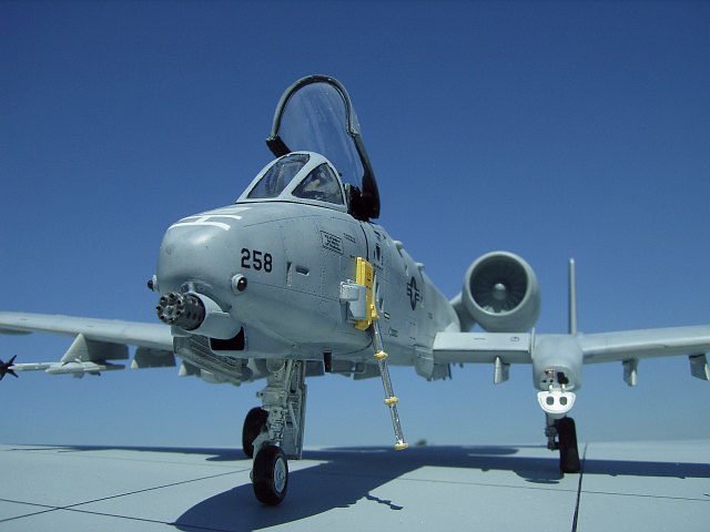Beim Bau der A-10 von Italeri war das einzig nennswerte Problem der Erhalt der aufgesetzten Nieten an den Triebwerken. Aufgrund der mangelhaften Passgenauigkeit in diesem Bereich gehen durch das Schleifen mehr oder weniger viele Nieten verloren. Auch sehr schade sind die schlechten Triebwerkseinlässe, hier sieht man mehr als überdeutlich eine Kante zwischen den Teilen. Desweiteren ist anzumerken, dass das Cockpit leider jeglicher Detaillierung entbehrt.