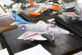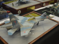 Am nächsten morgen ging es rechtzeitig auf die Ausstellung. Nach kurzem Blick in die Halle, in der sich die Tische inzwischen ordentlich gefüllt hatten (insgesamt ca. 2460 Modelle aller Kategorien!) suchte ich rasch den Eduard Shop auf, schließlich hatte ich die Bestellungen meiner Kameraden abzuarbeiten, und die will man ja nicht enttäuschen. Aber Vladimir Šulc, auch persönlich anwesend, hatte vorgesorgt, und so gabs bis zum Nachmittag ausreichend Eduards neue 72er MiG-21 MF Bausätze. Um alle Händler unterbringen zu können, hatte man das benachbarte Gebäude des Lajos-Kossuth-Gymnasiums (früher Veranstaltungsort der Moson Show) mit genutzt. Der Andrang, besonders am Samstagvormittag, war überwältigend. Überwältigend war auch die Anzahl und vor allem die Verteilung der Nadeln, die alle Aussteller auf einer Europakarte im Foyer der Sporthalle an ihren Herkunftsort stecken konnten. Europa (einschl. Russland) reichte da nicht aus. An den Rändern wurden noch Teilnehmer aus den USA, aus Taiwan und Südkorea verzeichnet. Auch der Libanon, die Türkei und Tunesien waren vertreten. So kam man zum Mittagsimbiss (sehr gutes Angebot) auch schnell ins Gespräch, in unserem Fall mit Modellbaukollegen aus Slowenien.