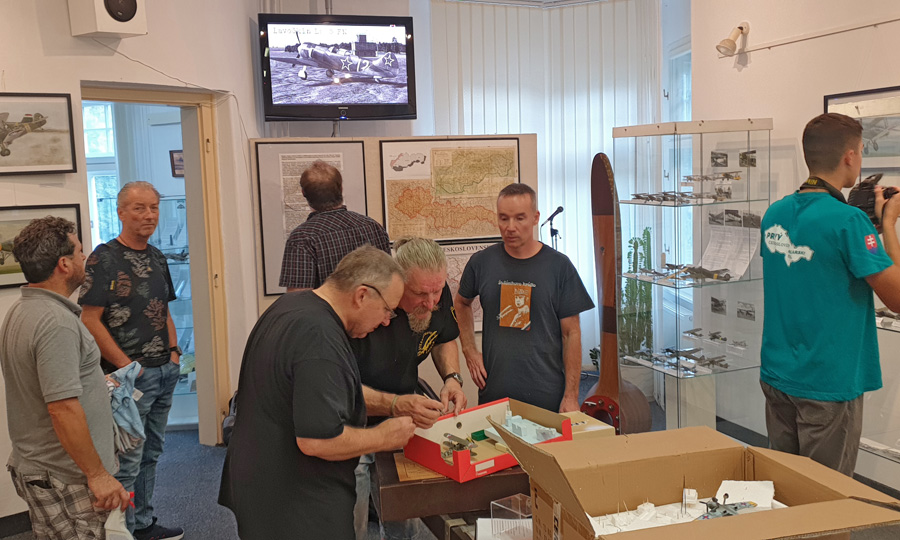 Seitdem lagerte der Hangar in einer Kiste verpackt relativ unbeachtet im Hause der Familie unseres verstorbenen Clubkameraden. Uli, unser Bastelfreund mit vielen Ideen und Kontakten bis in die Slowakei hatte die Idee, das ganze Projekt auch weiter der Öffentlichkeit zugänglich zu machen. Zu einem seiner vielen Kontakte zählt Peter Vagac aus der Slowakei. Und von ihm erfuhr Uli, das ab 21. September 2023 eine zweimonatige Sonderausstellung des Museums in Pieštany zu genau dieser Thematik, unter dem Motto: “Slowakische Flieger im Zweiten Weltkrieg und ihre Flugzeuge“ stattfindet. Organisiert von Modellbauern aus der Slowakei und der Tschechei mit vielen Modellen und Originalfundstücken.
